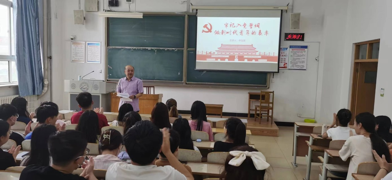 6月8日下午,yL23411永利集团党委书记申玉发为全体毕业生党员讲授以“牢记入党誓词,做新时代青年的表率”为题的专题党课。