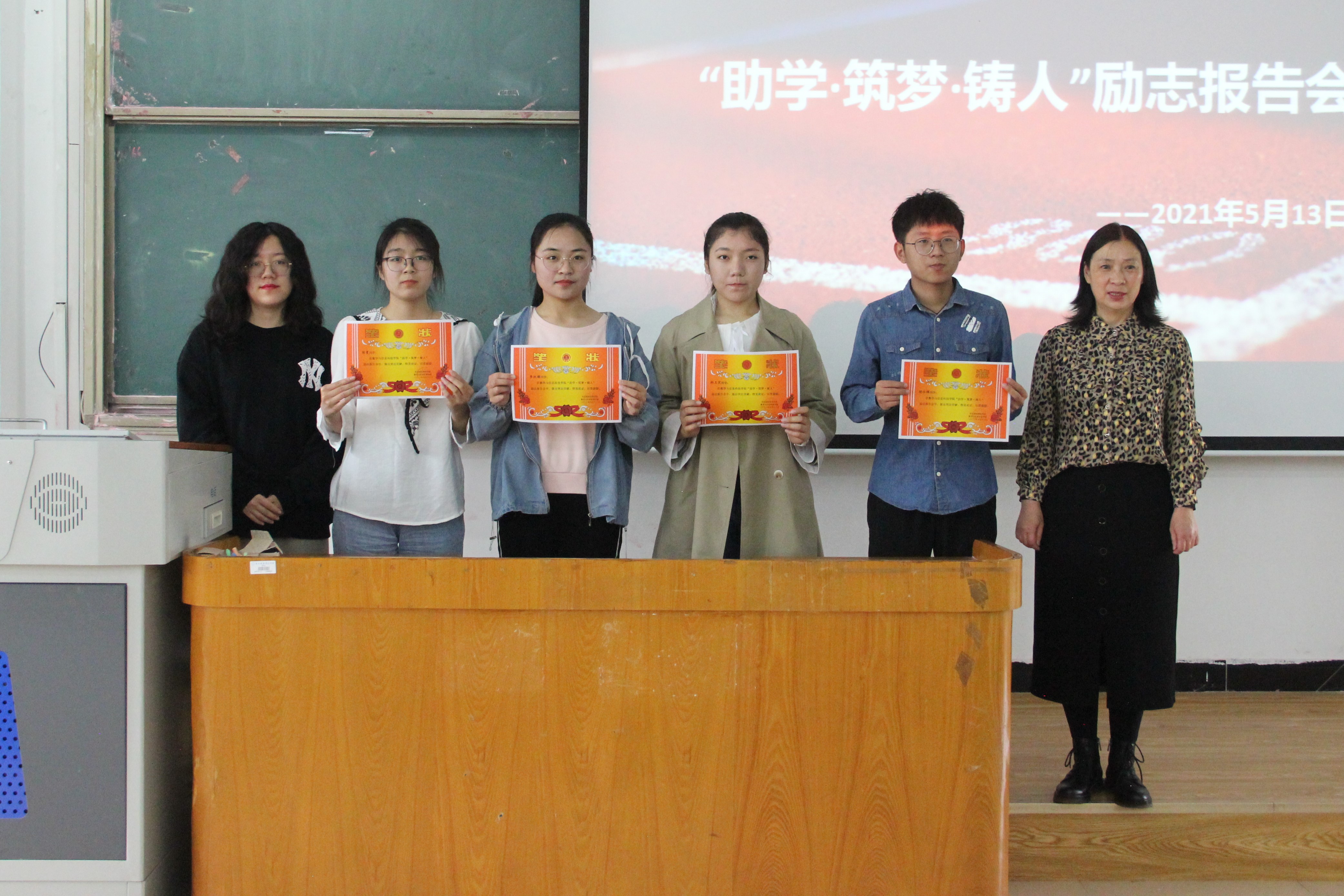 2021年5月13日,数信学院在逸夫教学楼B206教室开展了“助学·筑梦·铸人”励志报告会。数信学院2020级数学与应用数学专业,网络工程(统招)专业以及应用统计学专业共计210名学生参加了此次报告会。