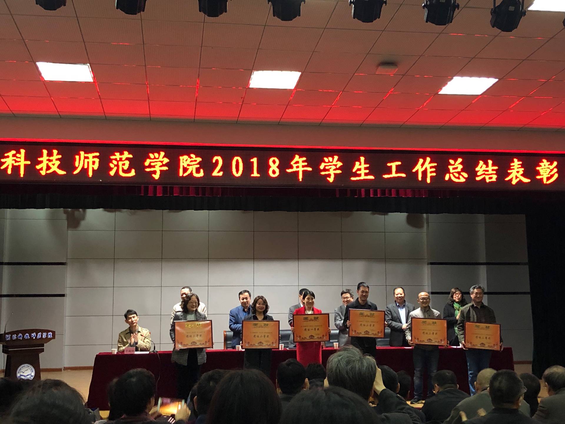 2019年3月29日,我校召开了2018年学生工作总结表彰大会,副校长张福喜出席大会并作重要讲话。党委组织部、宣传部、学工部、校团委、招生就业处、安全工作部等部门负责人、各院(系)分管学生工作领导、全体辅导员、班主任等200余人参加了会议,会议由校团委负责人主持。会上,学生处负责人对我校2018年学团工作做了全面的总结回顾。随后,会议对我校2018年辅导员职业技能大赛、学生公寓综合治理及信息管理、辅导员(班主任)年度人物、辅导员(班主任)暑期“大家访”等学生工作项目的先进集体和个人进行了总结表彰,举行了颁奖仪式。