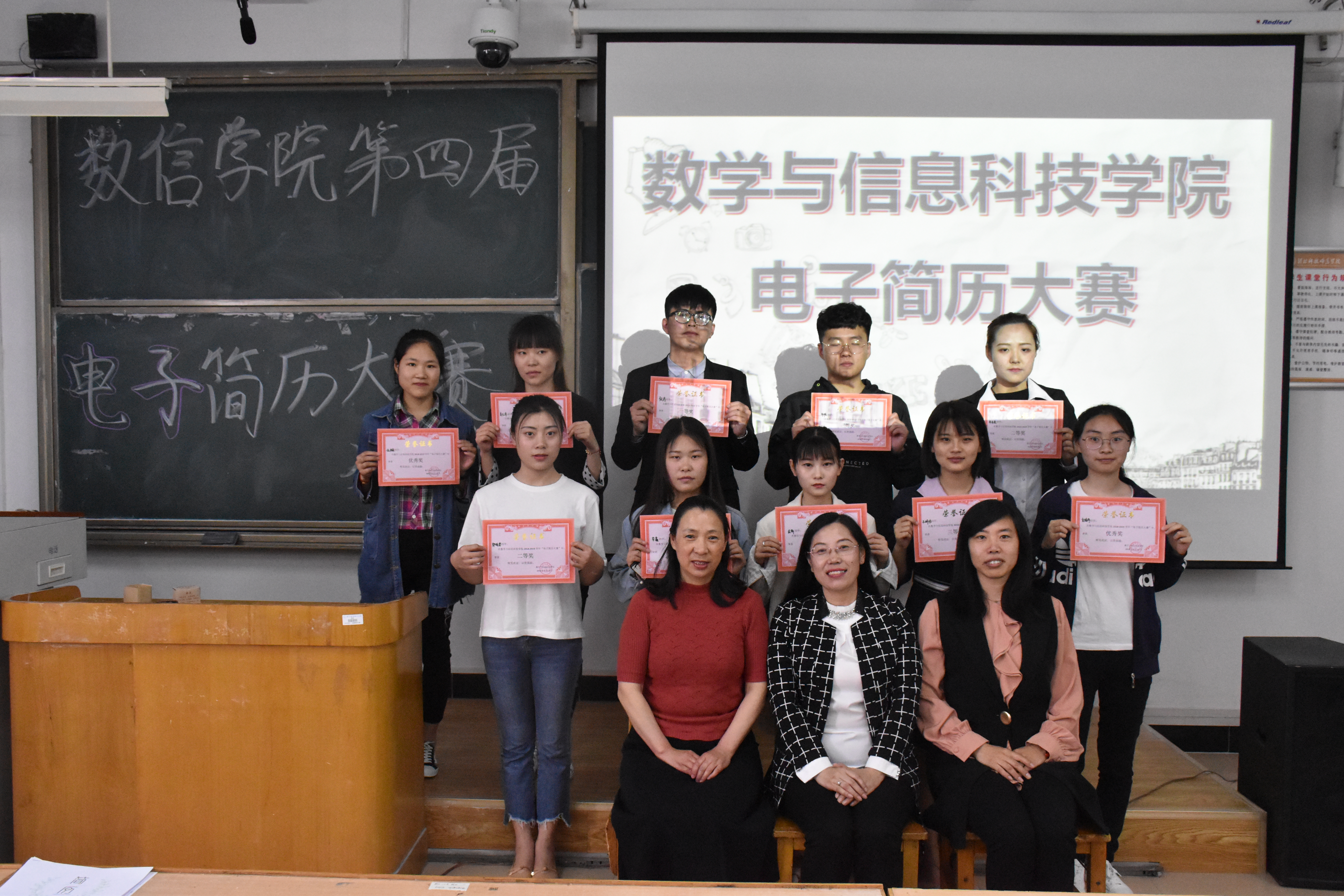 比赛分电子简历展示、个人答辩、评委提问三个环节进行。经过激烈角逐,数学与应用数学1603班张培获得一等奖,网络工程1601班郭晓姿 、计算机科学与技术1602班宋乐炎获得二等奖,计算机科学与技术1606班牛明珍、数学与应用数学1602班齐朕、计算机科学与技术1604班孟萌获得三等奖,数学与应用数学1601班李仁华、网络工程1601班李鑫 、物联网工程1701班贡晓丹、数学与应用数学1603班伍子璇获得优秀奖。评委们对参赛选手在电子简历设计制作中新科技应用、富有创新之处给予了充分肯定,同时对还需要进一步优化提升等方面也分别提出了指导性意见和建议,同时也向同学们介绍了电子简历制作的技巧和注意事项。