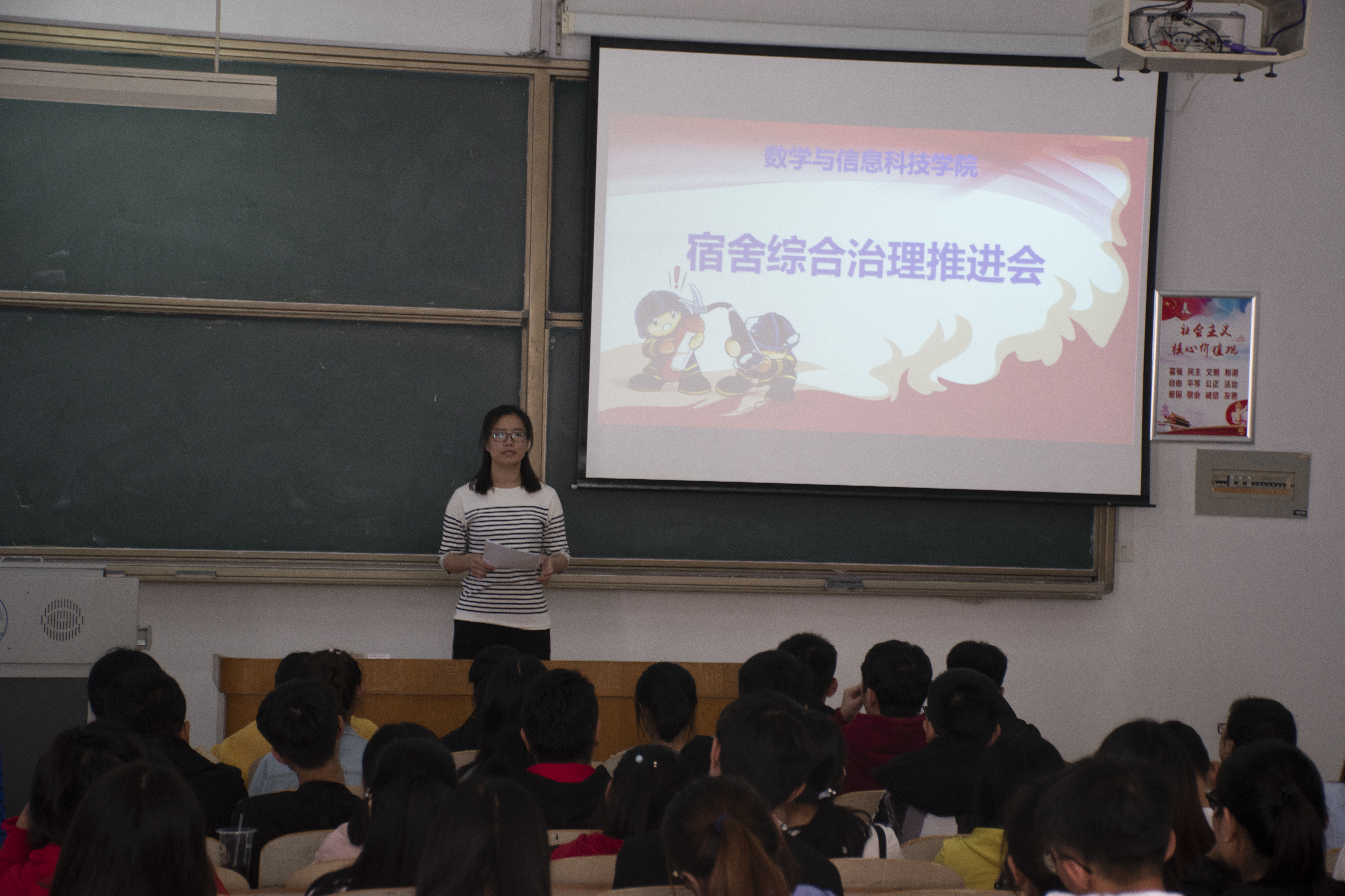 为贯彻落实学校党委学工部、安全工作处、大学生服务中心工作部署,进一步加强宿舍综合治理及信息管理工作,提升学生安全意识,提高学生自我管理能力。2018年9月28日,yL23411永利集团在秦皇岛校区逸夫楼A103召开了宿舍综合治理推进会,数信学院学工办老师、班主任、各班级生活委员参加会议。