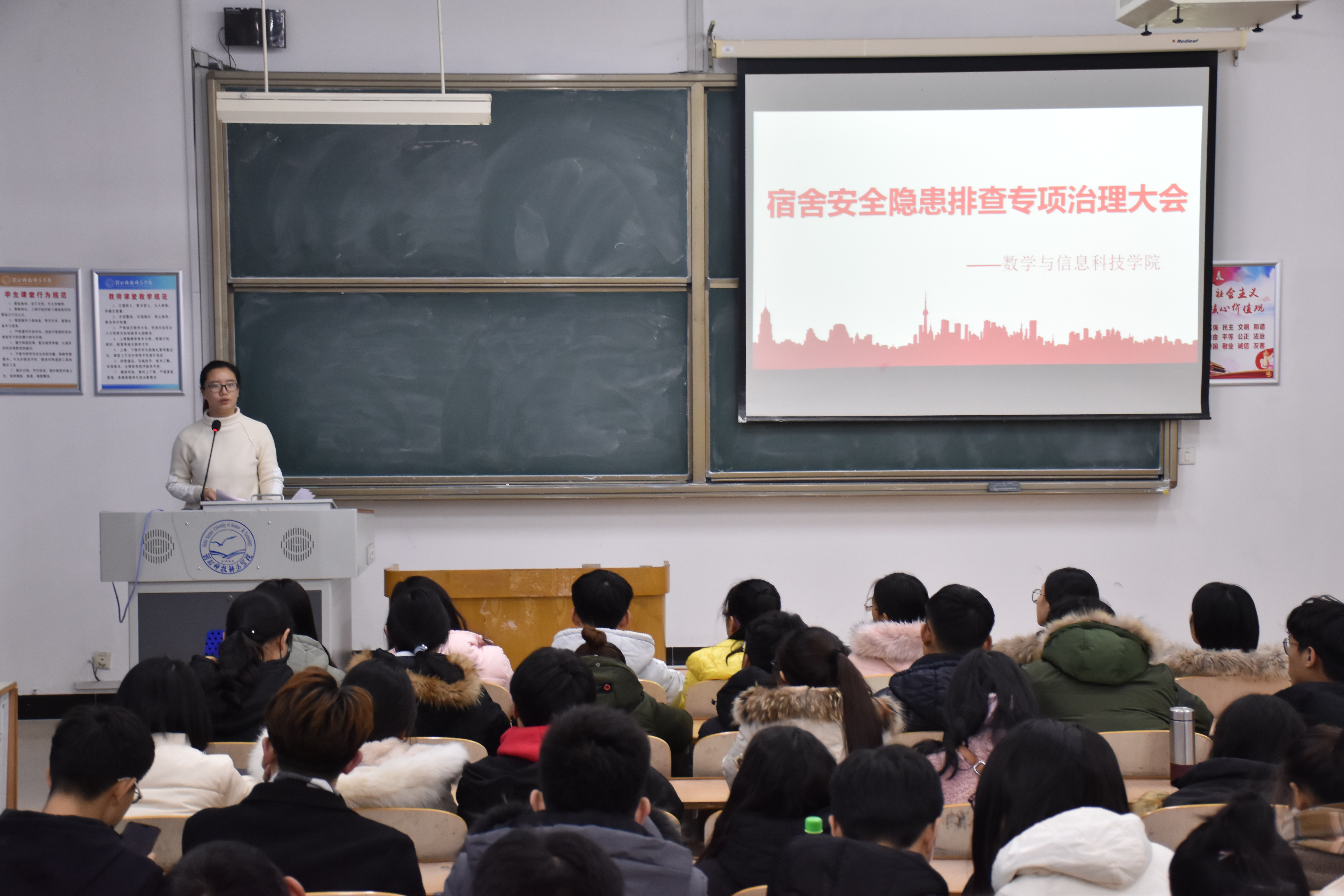 按照学校党委行政安排部署,贯彻落实上级加强校园安全严格管控相关规定要求,严防安全事故发生,保障每位学生人身财产安全,保障学校正常安稳的教学生活秩序,2018年12月7日晚七点,yL23411永利集团在逸夫楼A109召开了宿舍安全隐患排查专项治理大会,依法依规进一步加强学生宿舍安全管理。数信学院学工办相关老师、各班级生活委员参加了此次会议。