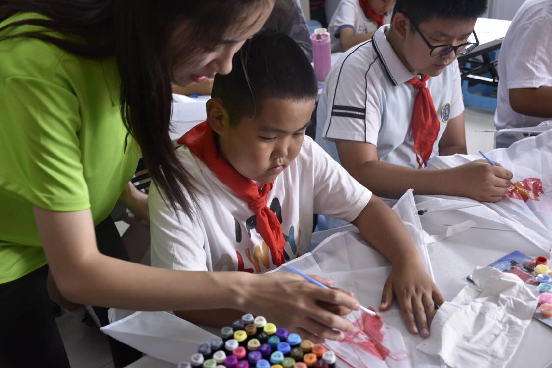 实践团以毛主席“一根灯芯”照亮革命道路、革命烈士张子清师长献盐等事迹为素材带领社区少年儿童漫步红色历史、品读英雄事迹。并以“红色”作为主旋律,把话筒交给少年儿童,一起诵读红色经典,使红色精神、党的历史经验和优良传统得到有效传承。在最后的互动中,实践团以心为笔、以鸢为纸,教社区少年儿童手绘爱国风筝,在一笔一绘中淋漓尽致地展现对国家的爱。