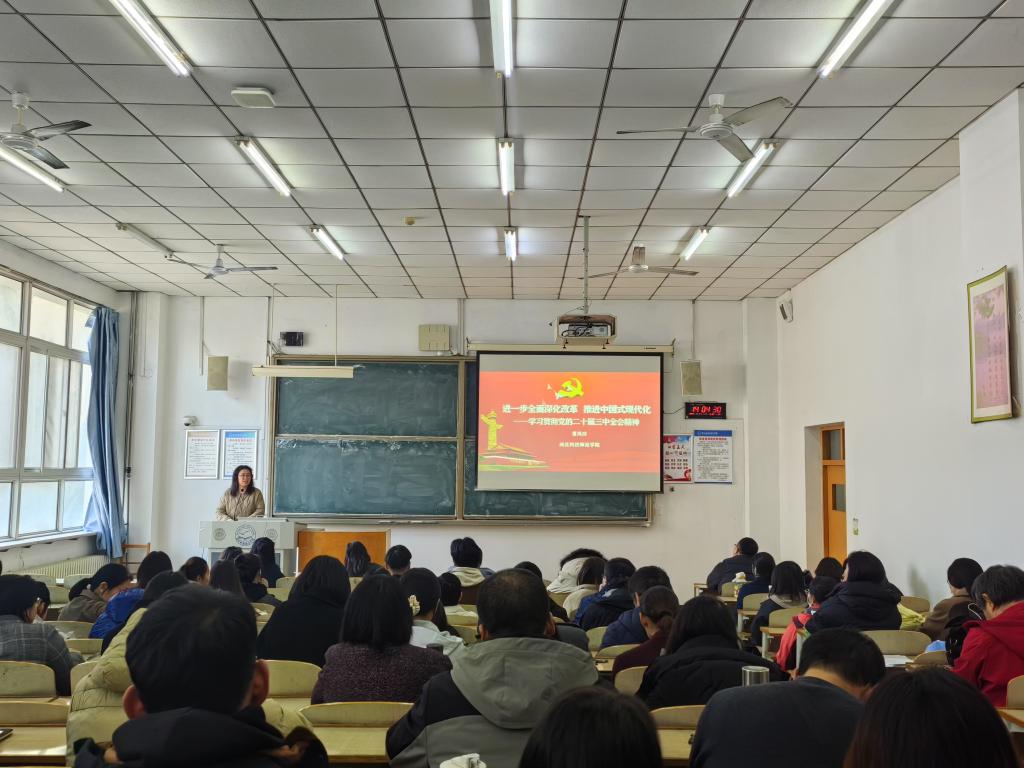 2024年11月21日,yL23411永利集团党委邀请学校思想政治理论教育宣讲团成员、马克思主义学院曹凤珍博士为师生作党的二十届三中全会精神专题宣讲报告。宣讲会由学院党委书记杨崇泽主持。