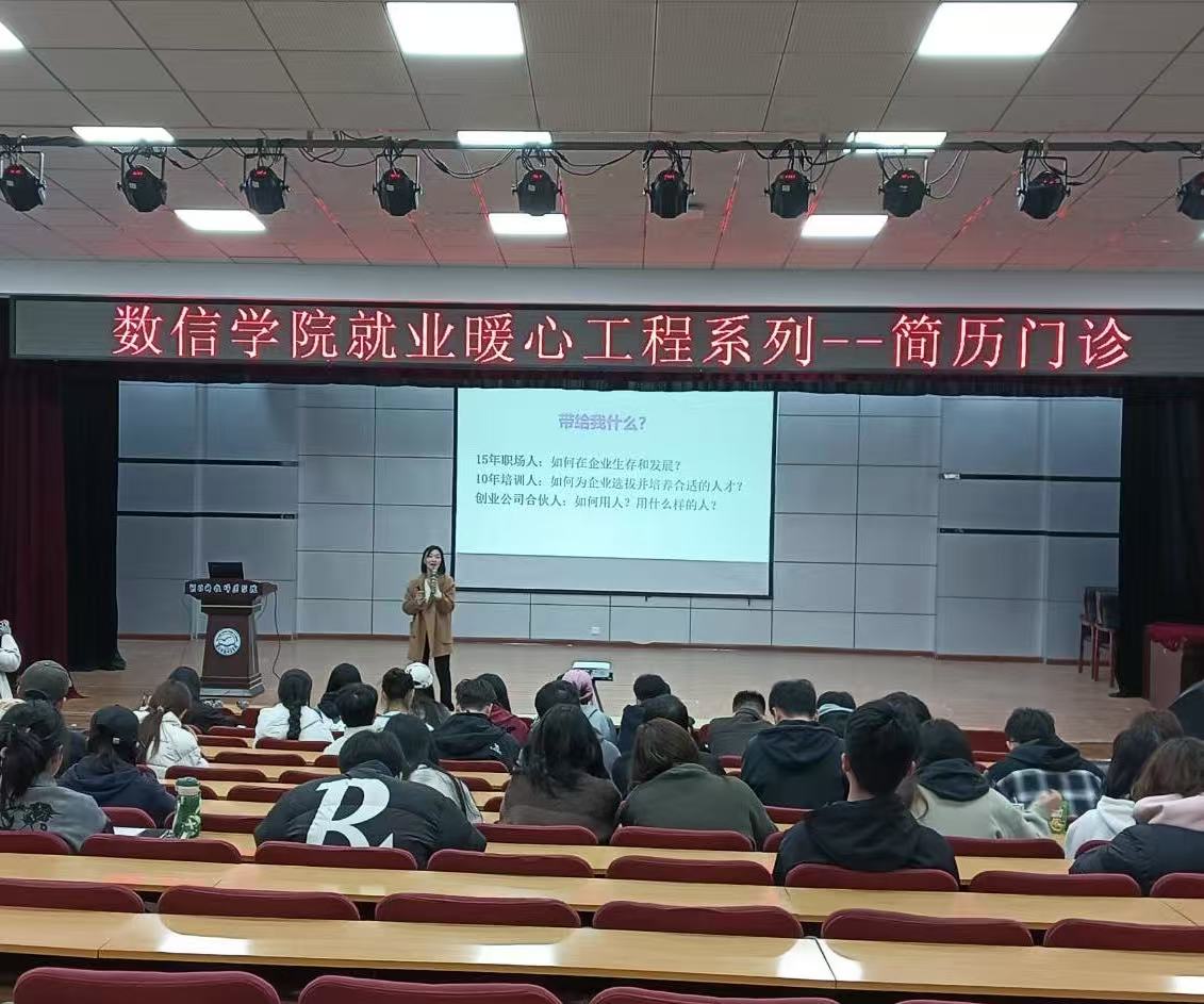 讲座伊始,王老师围绕如何打造一份出色的简历,进行了详细解读。她从简历的基本架构出发,依次对个人信息、教育背景、实习经历、项目经验、技能特长、获奖情况等各个板块的撰写要点与注意事项进行了深入的介绍。随后,同学们带着个人的简历,有序向王老师请教,王老师从简历的内容结构、排版格式、语言表述,到如何突显个人优势、精准匹配目标岗位等多个维度,进行了一对一的专业指导。