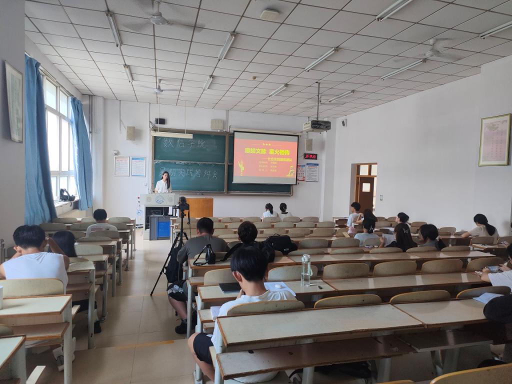 会上,各实践团负责人通过PPT讲解、视频介绍等方式围绕前期筹备、实践过程、成果凝练、团队特色、媒体宣传、总结反思进行汇报,内容涵盖爱国主义教育、中华文化传承、乡村振兴、服务基层等8方面。最后,学院团委负责同志对此次暑假实践活动的组织情况进行总结,给予各个实践队高度评价,并鼓励全体同学以优秀实践团队为榜样,勇于探索、敢于实践,将所学知识与社会需求相结合,将个人发展目标融入国家建设当中。
