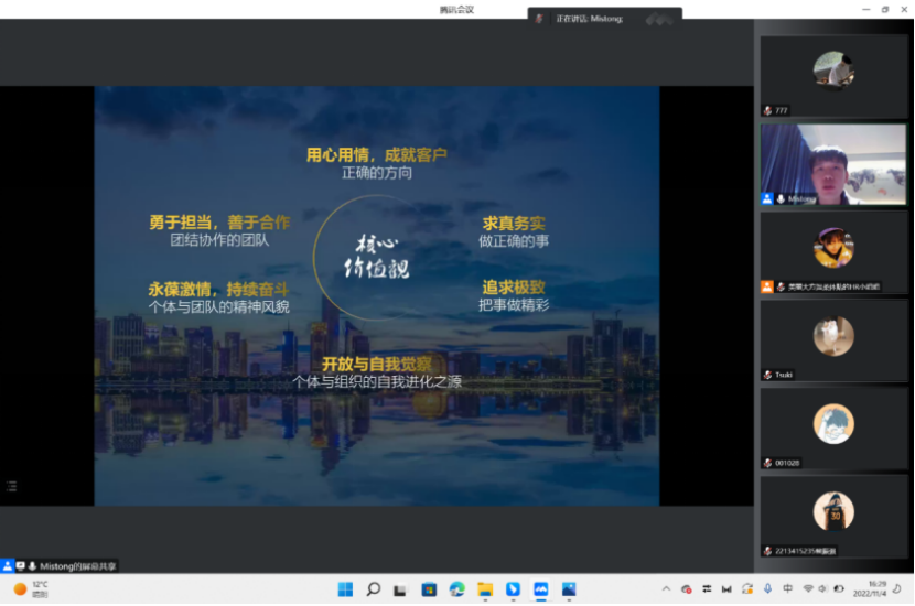 2022年11月4日星期五下午4点铭师堂空中宣讲会顺利在线上召开。yL23411永利集团有求职意愿的同学积极参加了本次会议。