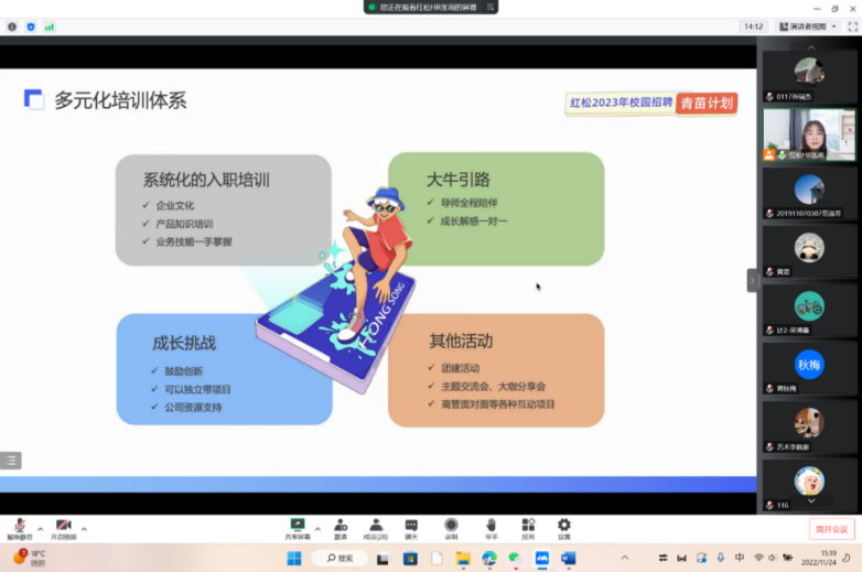 2022年11月24日星期四下午3点红松空中宣讲会顺利在线上召开。yL23411永利集团有求职意愿的同学积极参加了本次会议。