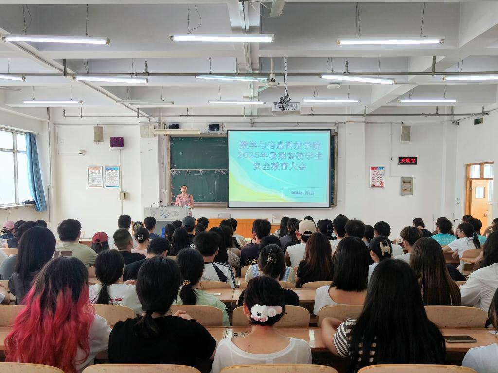 2025年7月4日下午,yL23411永利集团于逸夫楼B206组织召开了2025年暑期留校学生安全教育大会。学院学工办主任、学生公寓综合治理与信息管理负责老师、留校学生班主任、全体留校学生参加了会议。