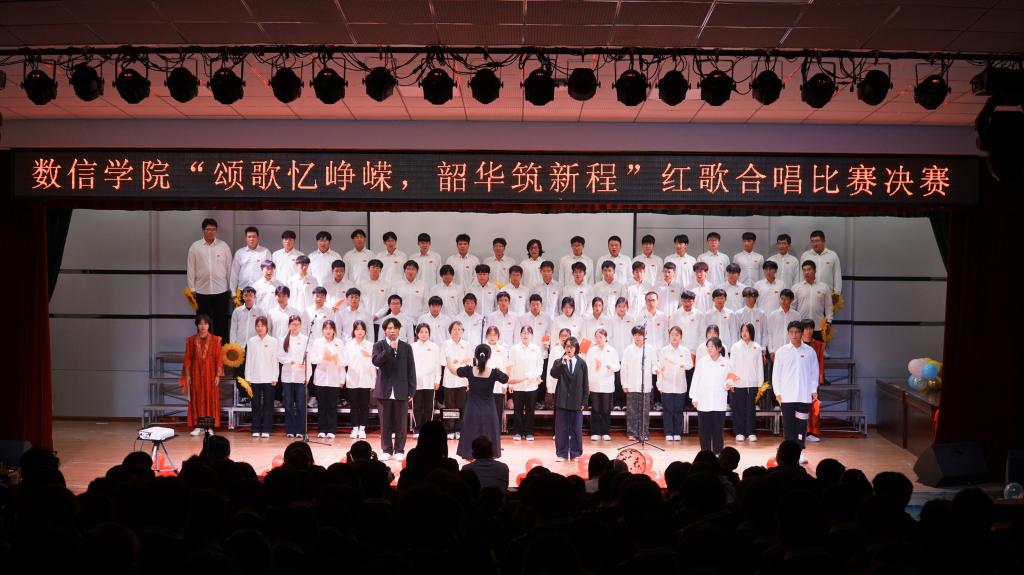本次比赛分初赛和决赛两个阶段。经过初赛激烈的比拼,最终脱颖而出8支队伍晋级决赛。决赛现场,参赛班级身着整齐统一的服装,身姿挺拔、精神抖擞,台风稳健大气。从《没有共产党就没有新中国》的铿锵有力到《歌唱祖国》的豪情满怀,从《少年中国说》的朝气蓬勃到《大中国》的深情款款,一首首经典红歌与校歌轮番上演,旋律悠扬、歌声嘹亮,既唱出了对祖国母亲的赤诚热爱与美好祝福,更彰显了数信学院学子锐意进取、奋发图强的青春风采。此外,各队伍还巧妙融入舞蹈、朗诵、乐器弹奏等创意元素,将听觉享受与视觉体验完美结合,为现场观众呈现了一场精彩纷呈的视听盛宴,台下掌声、欢呼声此起彼伏,气氛热烈非凡。经过激烈的角逐和评委们的认真评选,最终评选出了一等奖一个,二等奖两个,三等奖三个,优秀奖两个。