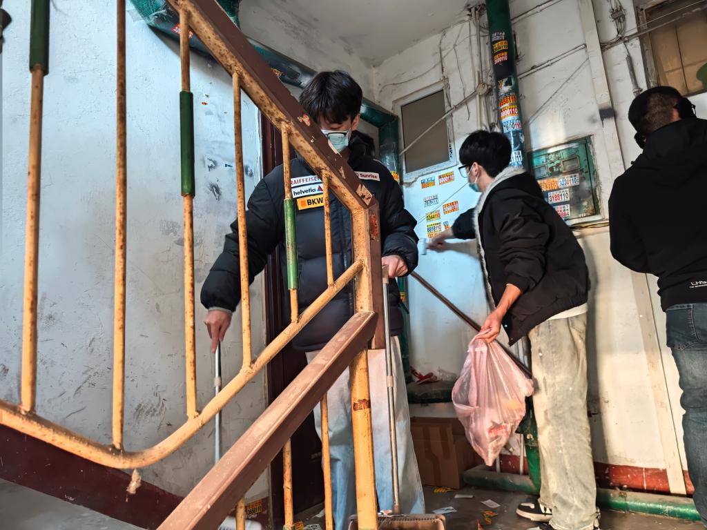 活动中,师生党员组成专项清理小组,全力投身社区环境整治。聚焦居民楼栋墙面、单元门、楼道、公共宣传栏等反宣品易滋生的重点区域,开展拉网式排查,用铲子、抹布、环保自喷漆、分类垃圾袋等工具,对非法张贴、喷涂的反宣品展开全面清理。针对纸质类张贴物,针对纸质张贴物,采用“精准铲除—擦拭残留”的科学流程高效清理;对顽固胶印和污渍,通过反复擦拭、接力作业的方式彻底清除,确保清理一处、洁净一处,不留死角。
