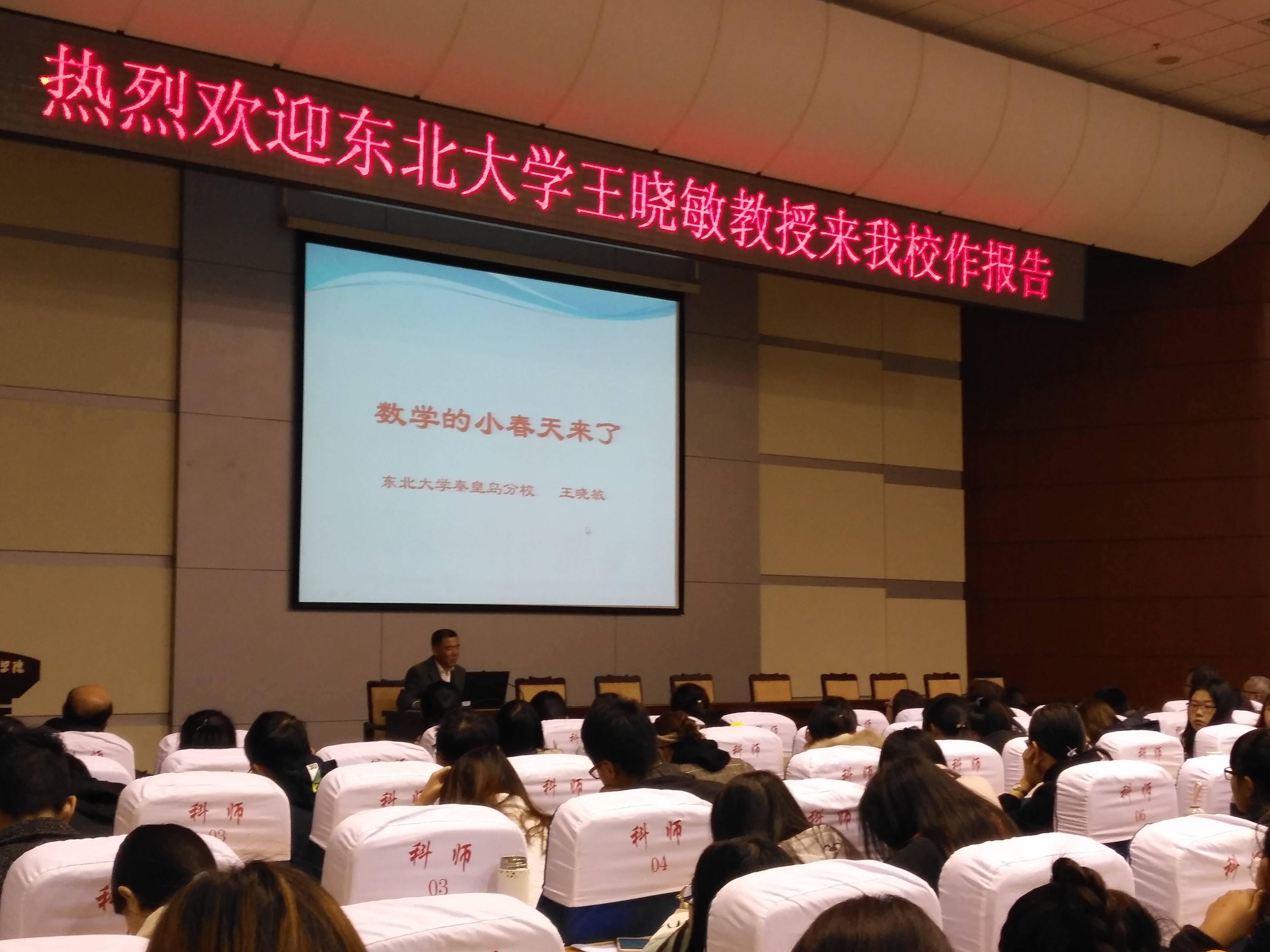 2018年10月30日上午,应yL23411永利集团的邀请,东北大学秦皇岛分校数学与统计学院王晓敏教授在学术报告厅作题为“从数学到人工智能--数学的小春天来了”的报告。报告会由数信学院行政负责人主持,学院全体数学教师及17级、18级应用统计学专业和数学与应用数学专业全体学生,以及计算机学科相关专业学生400余人聆听了报告。