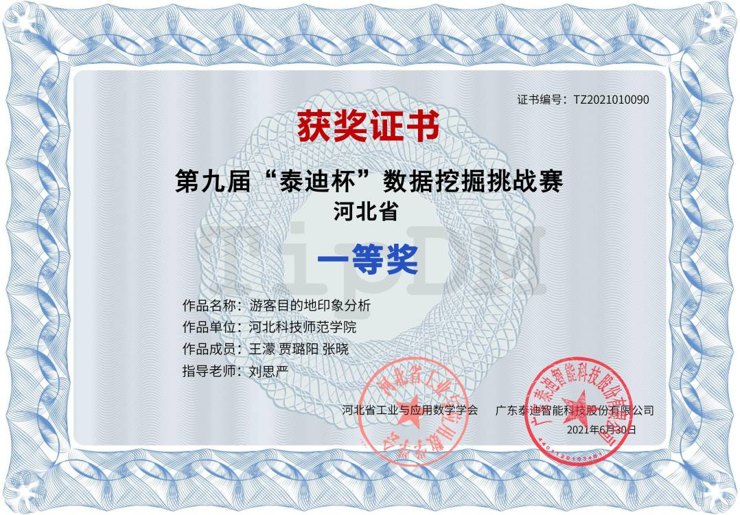 近日,第九届“泰迪杯”数据挖掘挑战赛河北省省级奖项揭晓,我校应用统计学专业学生获得一等奖1项、二等奖2项、三等奖2项的好成绩。